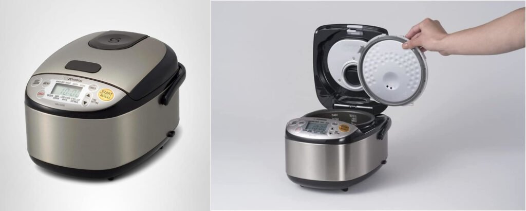 This model is a 3-cup capacity cooker ideal for small households. Built with Zojirushi’s reputation for precision engineering, it features a sleek stainless steel exterior, a clear LCD control panel, and multiple cooking presets. The capacity is perfect for 1–3 people and ensures that rice remains fluffy and fresh every time. Its compact size makes it suitable for limited counter space, dorm rooms, small apartments, and travel homes.